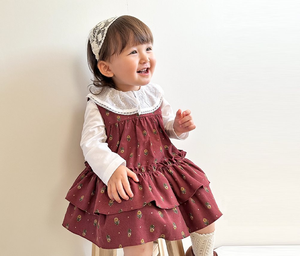 大人の流行を意識するのでは無く、新生児から3歳頃までのとびきりかわりいベビーサイズのお洋服だからこそ、子供達もご家族も幼少期を一緒に楽しめるデザインであるよう心掛けています。